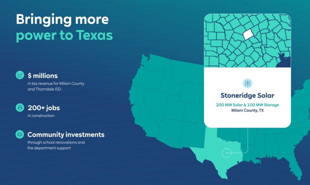 Niemiecki koncern energetyczny RWE – za pośrednictwem swojej spółki celowej Stoneridge Solar – zbudował w Teksasie kolejną wielkoskalową hybrydową instalację łączącą elektrownię fotowoltaiczną z bateryjnym magazynem energii (BESS). Zlokalizowany w hrabstwie Milam projekt Stoneridge Solar dysponuje mocą 200 MW w panelach fotowoltaicznych i 100 MW w magazynie BESS o pojemności 200 MWh. Inwestor właśnie poinformował o przyłączeniu instalacji do sieci elektroenergetycznej.