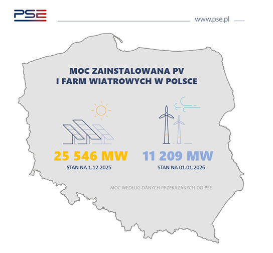 W grudniu 2025 r. zainstalowana moc elektrowni fotowoltaicznych w Polsce wynosiła – według danych Polskich Sieci Elektroenergetycznych – już ponad 25,5 GW, co oznacza wynik lepszy o kilka gigawatów w porównaniu z początkiem zeszłego roku.