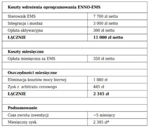 W rezultacie zwrot z inwestycji nastąpił już w niecałe 5 miesięcy od wdrożenia ENNO-EMS.