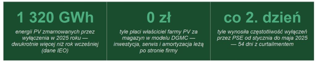 Żeby zrozumieć, dlaczego ta oferta trafia w czuły punkt rynku, wystarczy spojrzeć na to, co dzieje się z tysiącami polskich farm PV w sezonie wiosenno-letnim: są masowo wyłączane przez operatorów sieci w godzinach największej produkcji. Farma stoi, słońce świeci, a przychody znikają. Dla właściciela z kredytem inwestycyjnym na wiele lat to nie jest statystyka – to miesięczna rata, której nie ma czym pokryć.